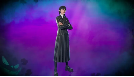 Inspirada na versão de Jenna Ortega da série da Netflix, Wandinha chega com o famoso emote da dança viral e o fiel companheiro Coisa.