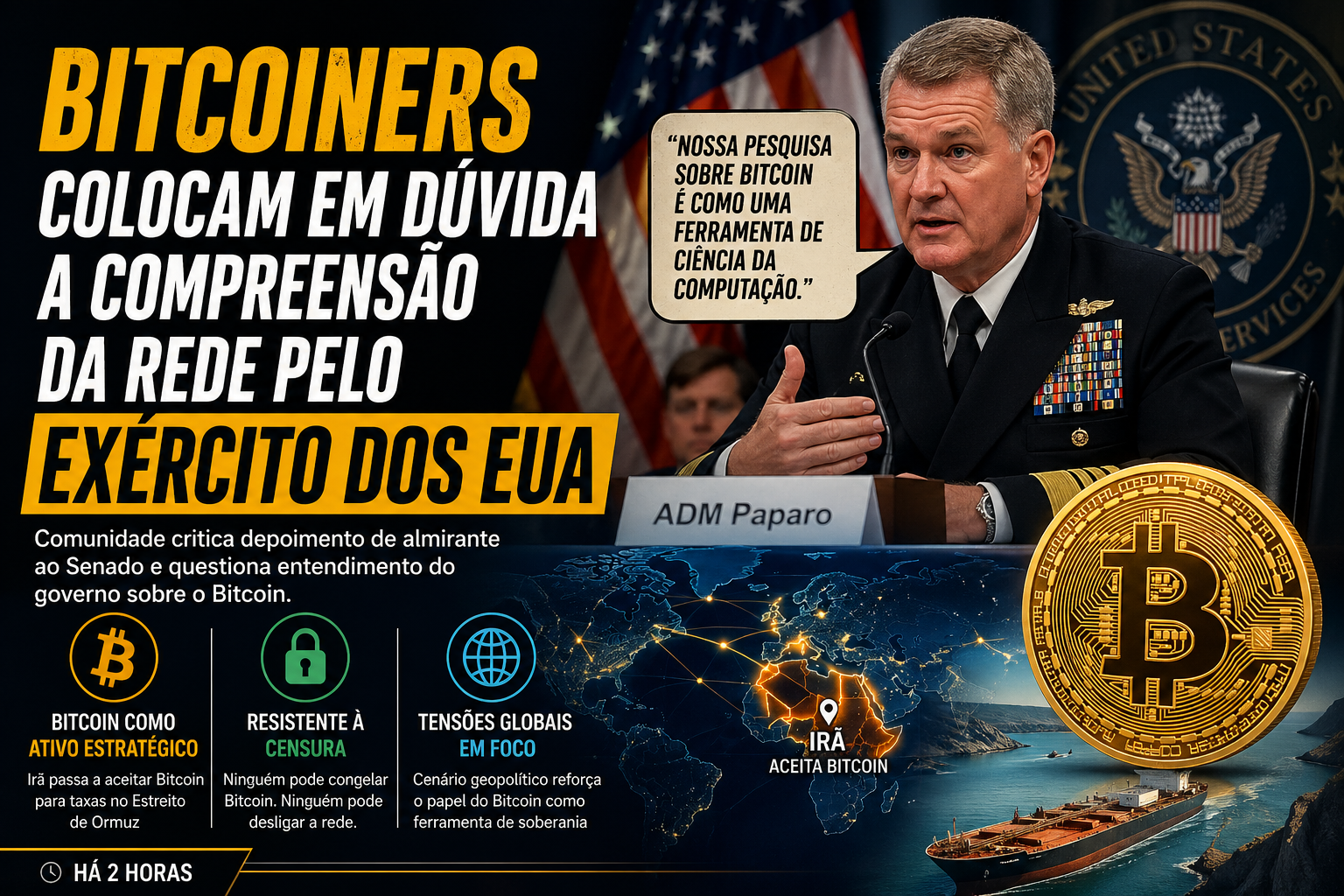 A relação entre governos e o ecossistema cripto voltou ao centro das discussões após declarações feitas por autoridades militares dos Estados Unidos. Integrantes da comunidade Bitcoin passaram a questionar o nível de entendimento do governo norte-americano sobre a tecnologia após um depoimento no Senado que gerou críticas e até ironias.
