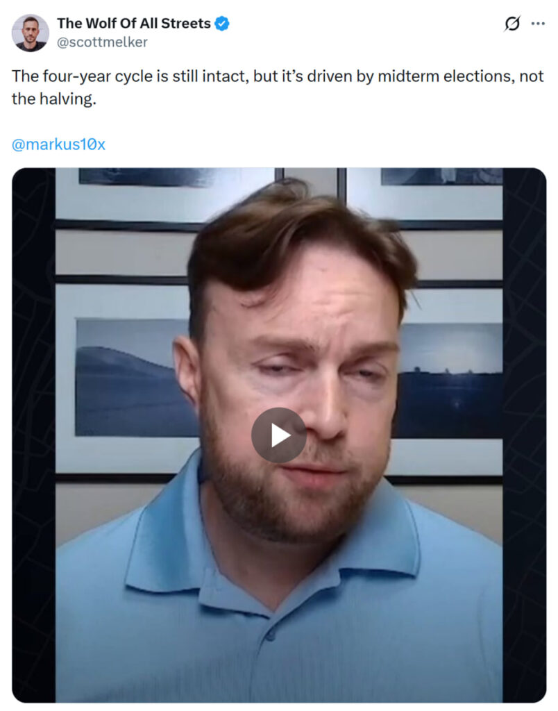 Markus Thielen, da 10x Research, afirma que o tradicional ciclo de quatro anos do Bitcoin ainda existe, porém deixou de ser guiado pelo halving e passou a responder principalmente a fatores políticos, eleitorais e de liquidez global.
