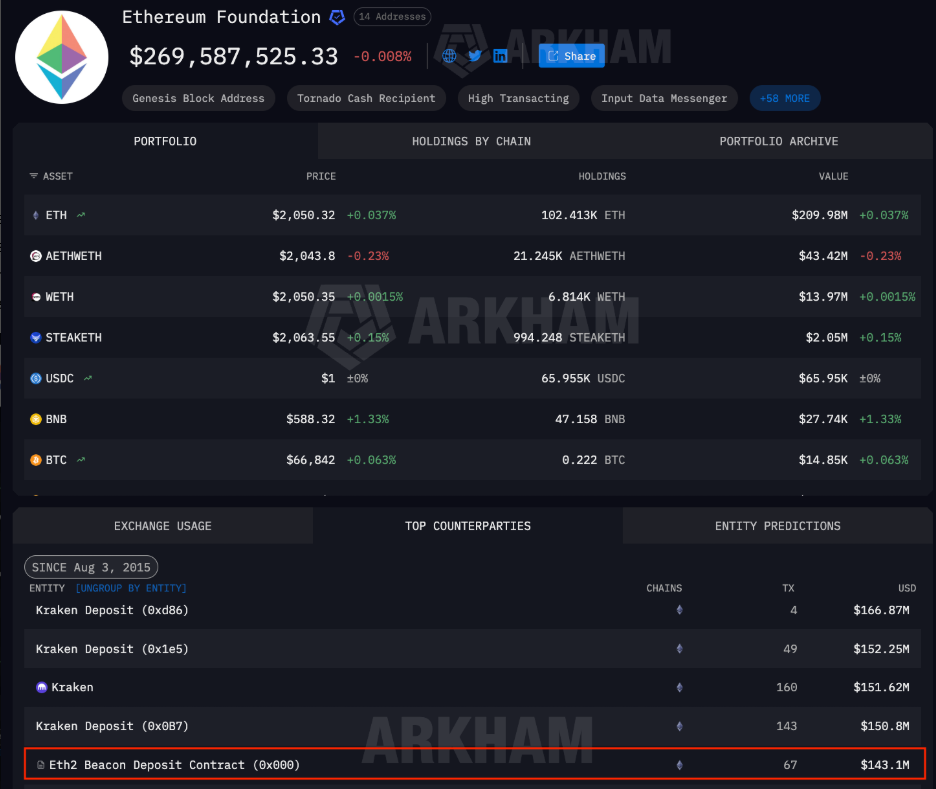 Com isso, o total alocado pela fundação no contrato oficial de depósito do Ethereum Beacon Deposit Contract já ultrapassa os US$ 143 milhões.