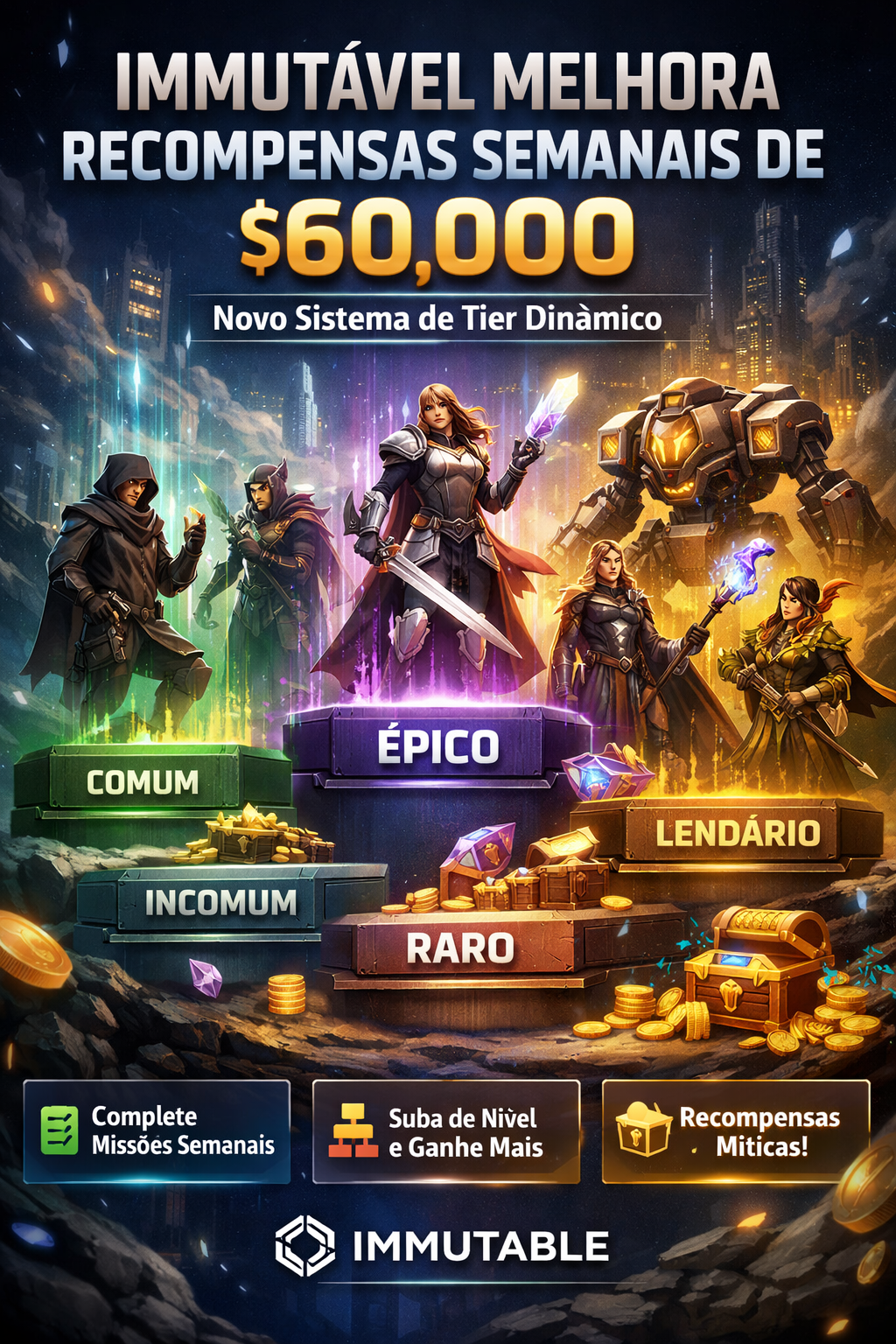 A Immutable anunciou oficialmente, em 19 de fevereiro de 2026, uma grande atualização em seu programa de Recompensas Semanais de US$ 60.000, introduzindo um novo sistema de tier dinâmico focado em jogabilidade consistente e engajamento real dentro de seu ecossistema onchain.
