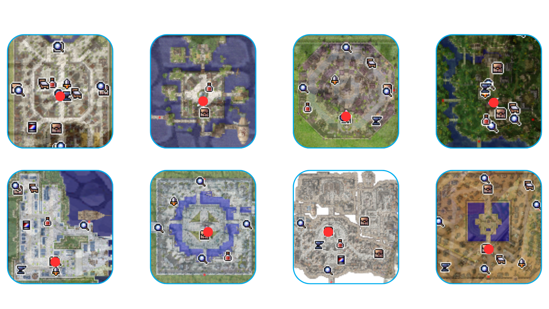 | Cidade | Coordenada | Nome do NPC |