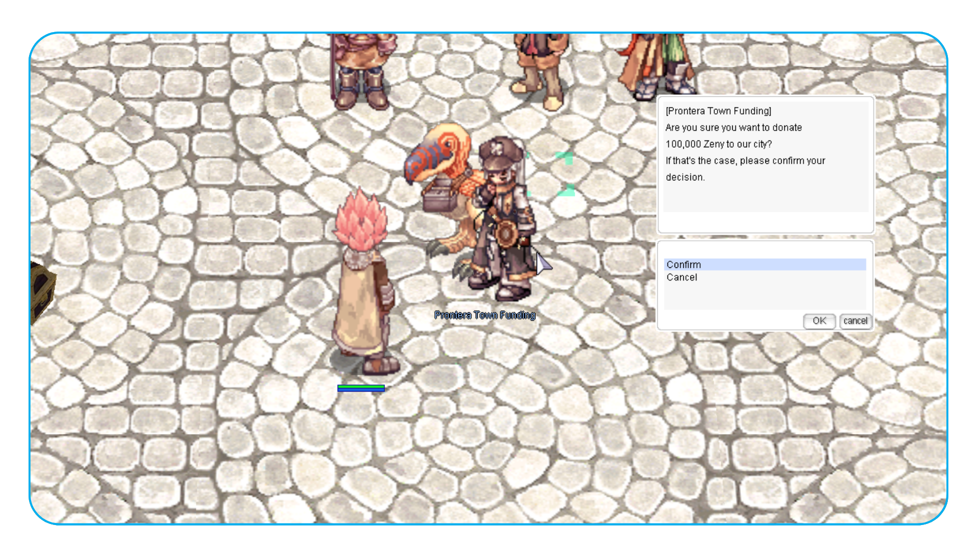 - Após a manutenção do servidor, você pode começar a doar Zeny em cada cidade.